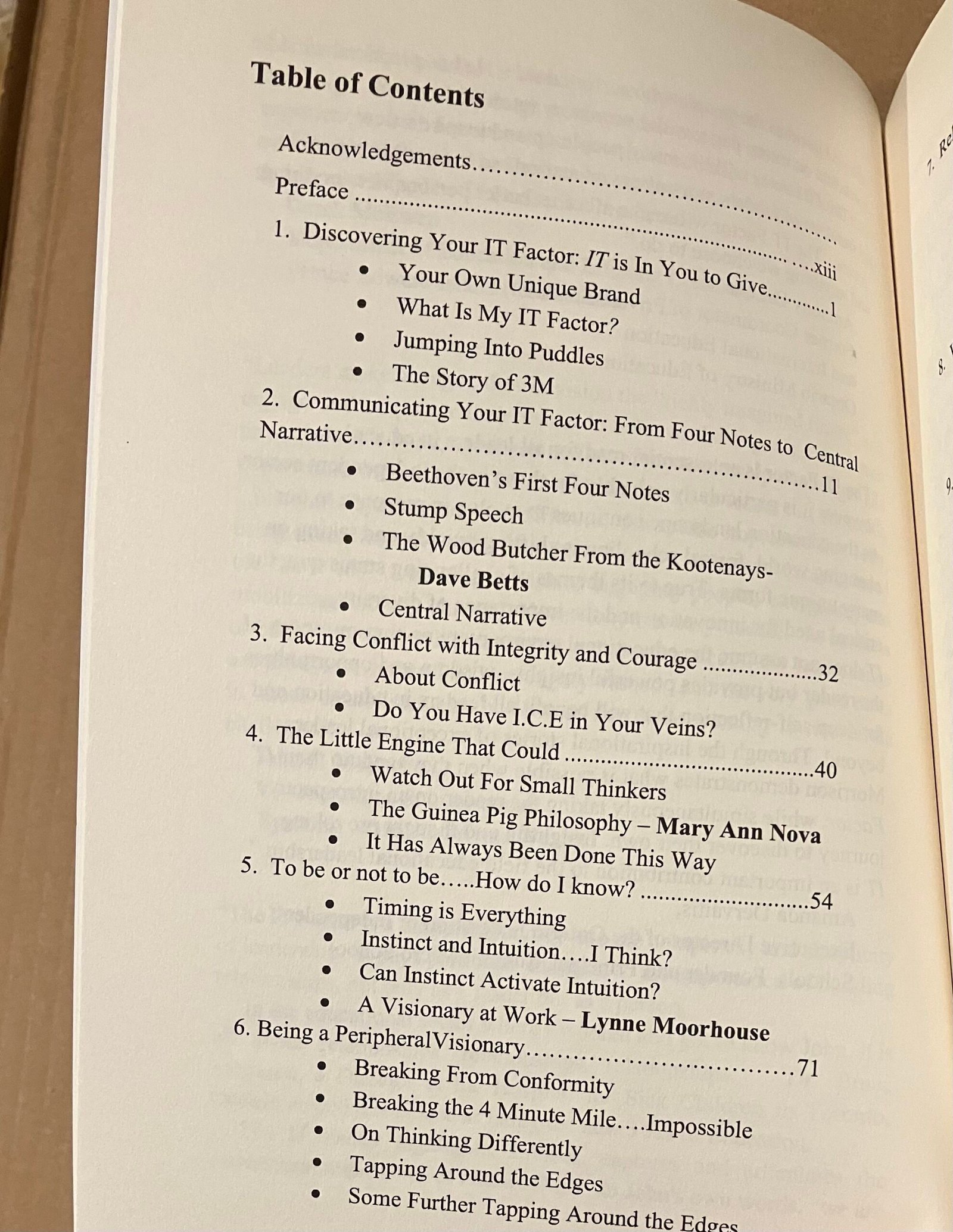 | The “IT” Factor: Discover and Unleash Your Own Unique Leadership Potential ISBN 9798709828797 Published Independantly in 2021 Get this book on Amazon (4.7/5 stars – 38 ratings) Purchase this book from me on SafeShipMedia Get it from me less expensive on Mercari A few copies are usually for sale on Ebay. | ![]() Back Cover Table of Contents Table of Contents 2 Sample Page |