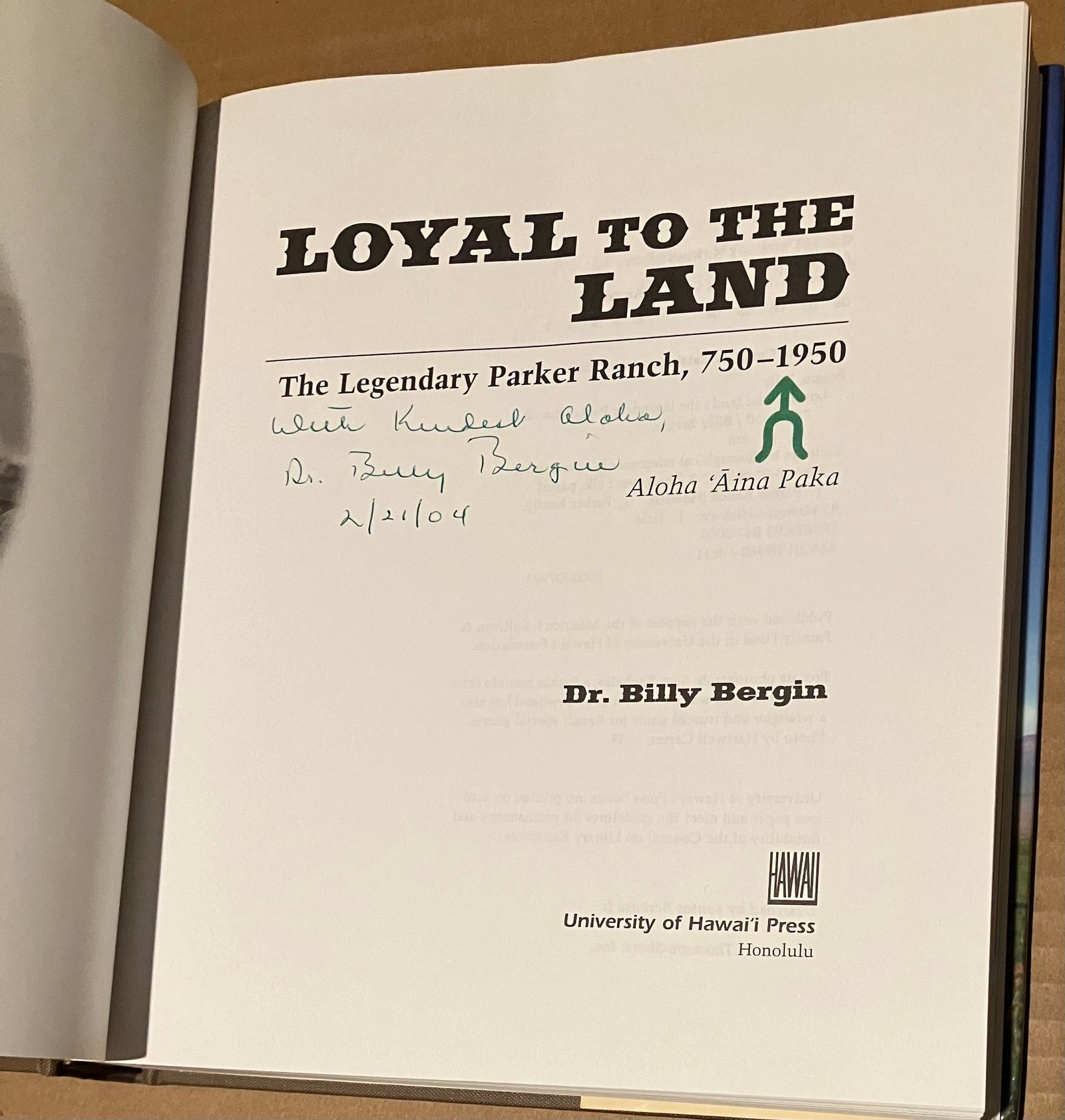 | Loyal to the Land: The Legendary Parker Ranch, 750 – 1950, Aloha ʻĀina Paka Get this book on Amazon (4.6/5 stars – 35 ratings). A few copies exist for sale on Ebay. Back to the main menu. Back to 5StarBookFinder | ![]() Cover Table of Contents Inside Cover Sample Page 1 Sample Page 2 Sample Page 3 |