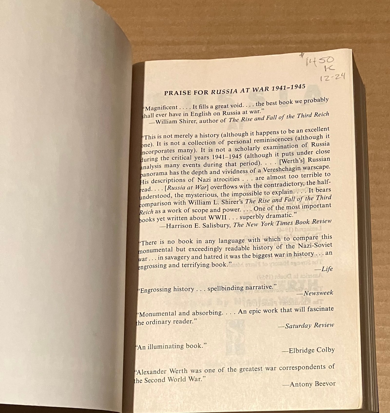 | Russia at War, 1941–1945: A History Get this book on Amazon (4.5/5 stars). A few copies may exist for sale on Ebay. Back to the main menu. Back to: 5StarBookFinder | ![]() Cover Table of Contents Table of Contents 2 Sample Page Sample Page 2 Sample Page 3 |