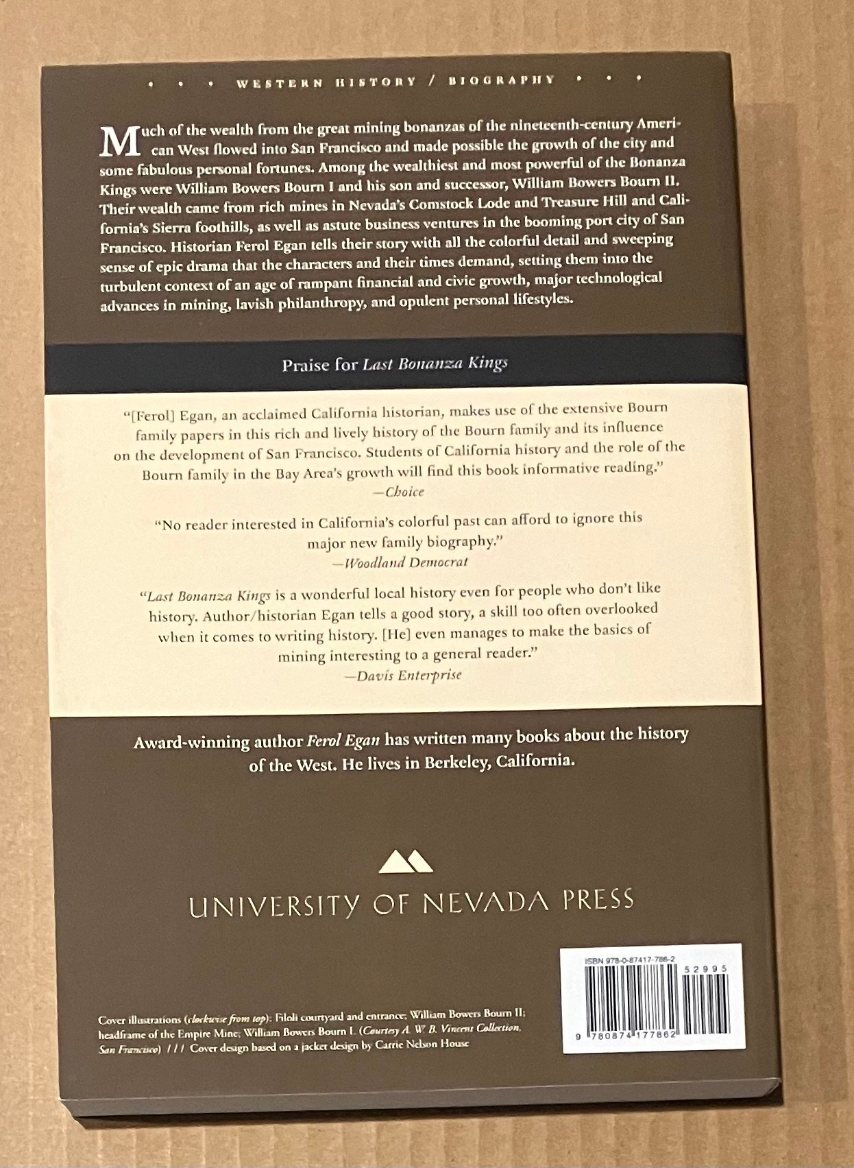 Last Bonanza Kings: The Bourns of San Francisco ISBN 9780874177862 Published by University of Nevada Press in 2009 Research this book on Amazon (4.3/5 stars). Purchase this book from me on SafeShipMedia or get it from me at a lower price on Mercari. Very few copies exist for sale on Ebay. Back to the main menu. Back to: 5StarBookFinder | ![]() Cover Table of Contents Sample Page 1 Sample Page 2 Sample Page 3 |