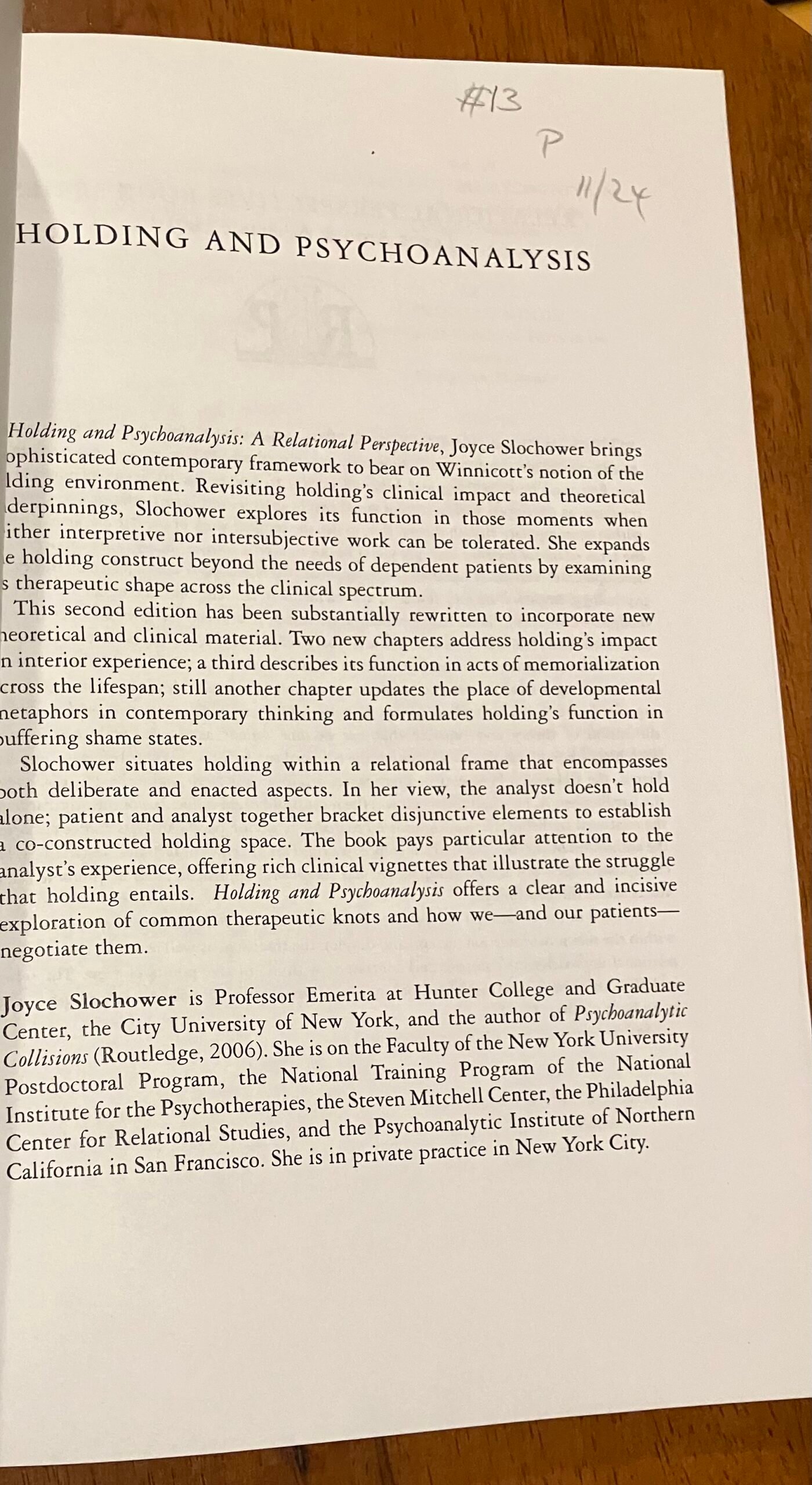 Holding and Psychoanalysis 2nd edition (A Relational Perspective) Publisher Routledge 2013/ 196 Pages/ Get this book on Amazon 4.7/5 stars Purchase this book from me on SafeShipMedia Get it cheaper from me on Mercari Get this book on Ebay. Back to the main menu. Back to: 5StarBookFinder | ![]() Cover Sample Page Table Of Contents Sample Page 2 |