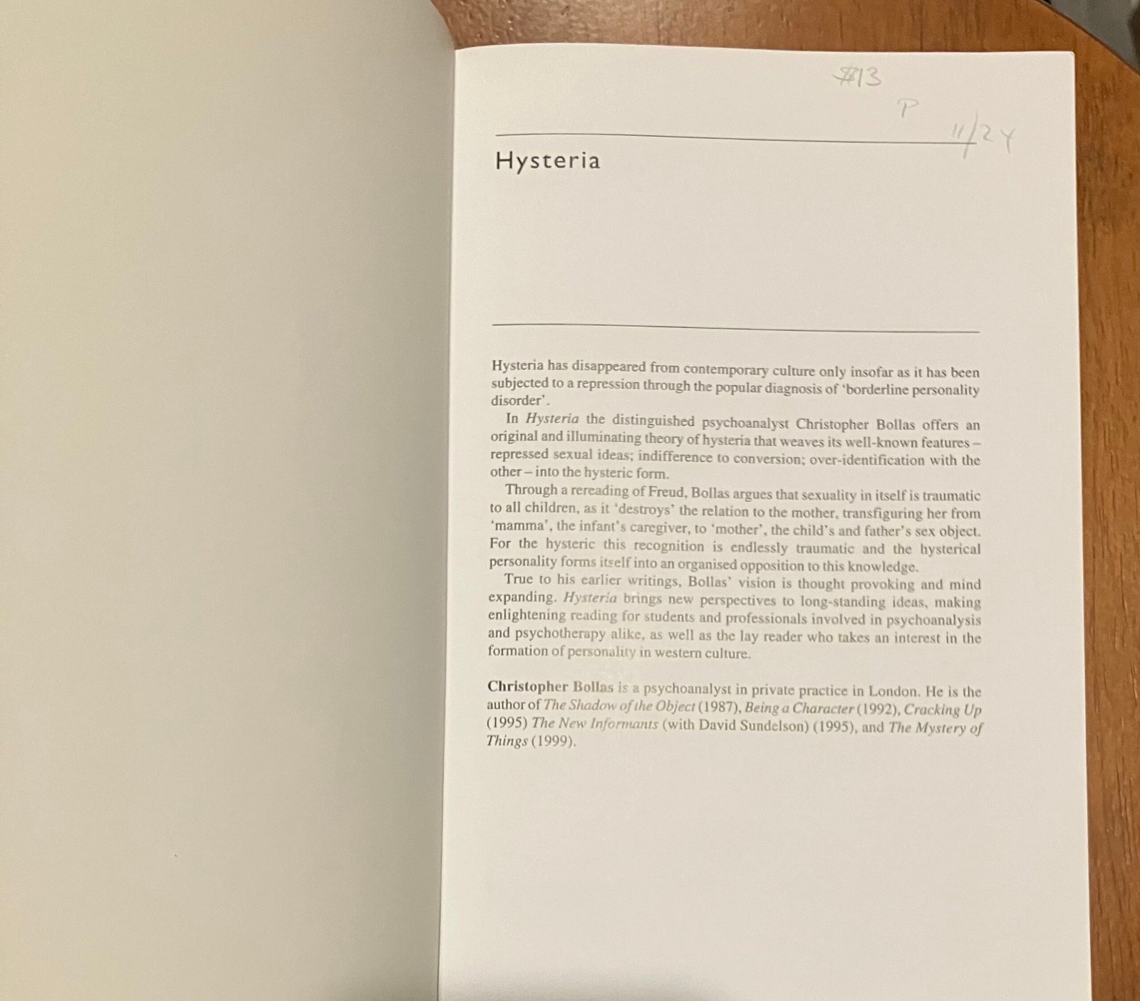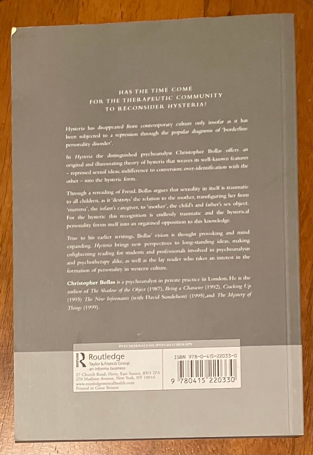 | Hysteria 1st Edition by Christopher Bollas Get this book on Amazon (4.9/5 stars). Get this book on Ebay (5/5 stars) Back to the main menu. Back to: 5StarBookFinder | ![]() Cover Sample Page Table Of Contents Sample Page 2 |
