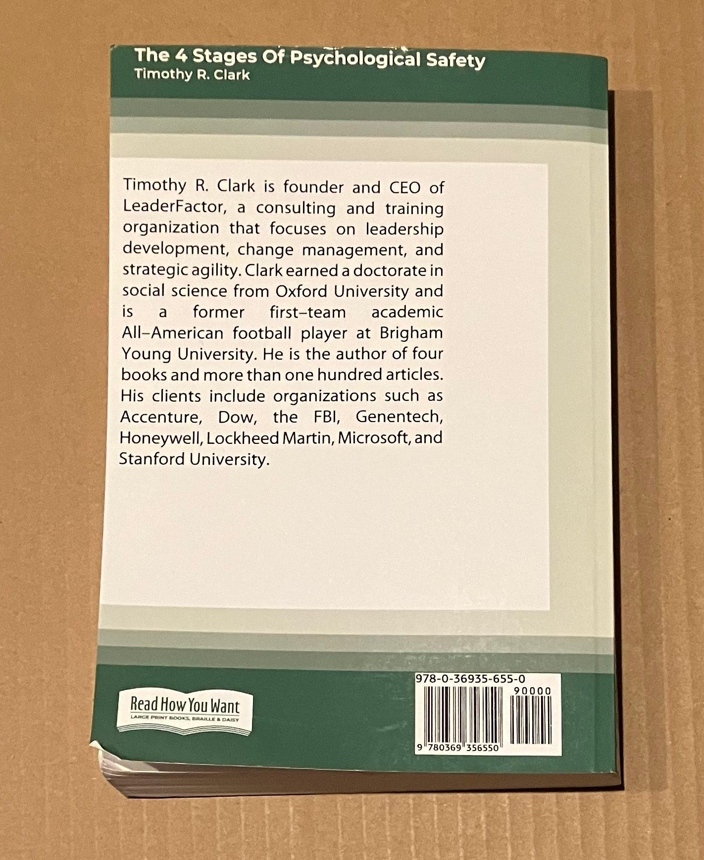 The 4 Stages of Psychological Safety Defining the Path to Inclusion and Innovation – Large Print Edition Get this book on Amazon (4.6/5 stars). Purchase this book from me on SafeShipMedia Quite a few copies exist on Ebay. Back to the main menu. Back to: 5StarBookFinder | ![]() Cover Sample Page Sample Page 2 |