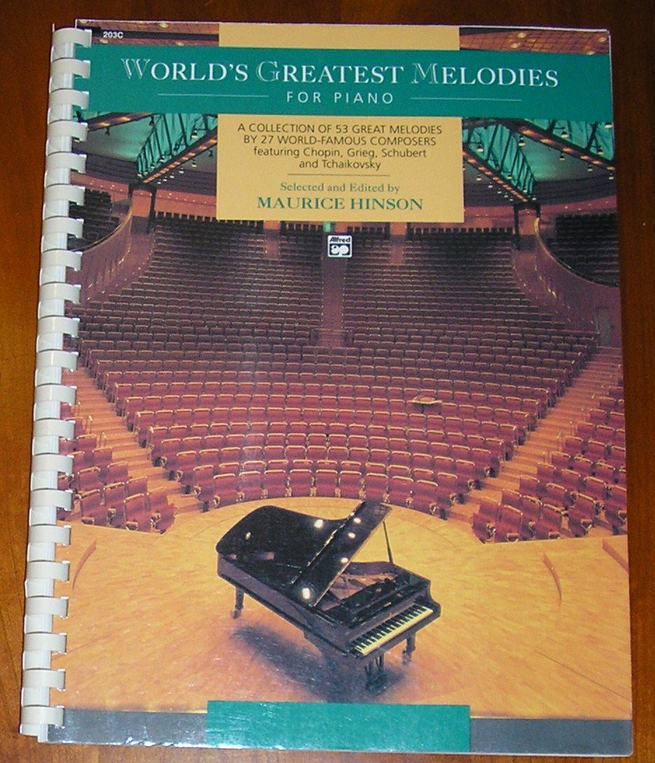 | World’s Greatest Melodies for Piano by Maurice Hinson Get this book on Amazon (4.4 stars). A few copies can be found on Ebay for sale. Back to the main menu. Back to: 5StarBookFinder | ![]() Table of Contents Contents 2 Sample Page 1 Sample Page 2 Sample Page 3 |